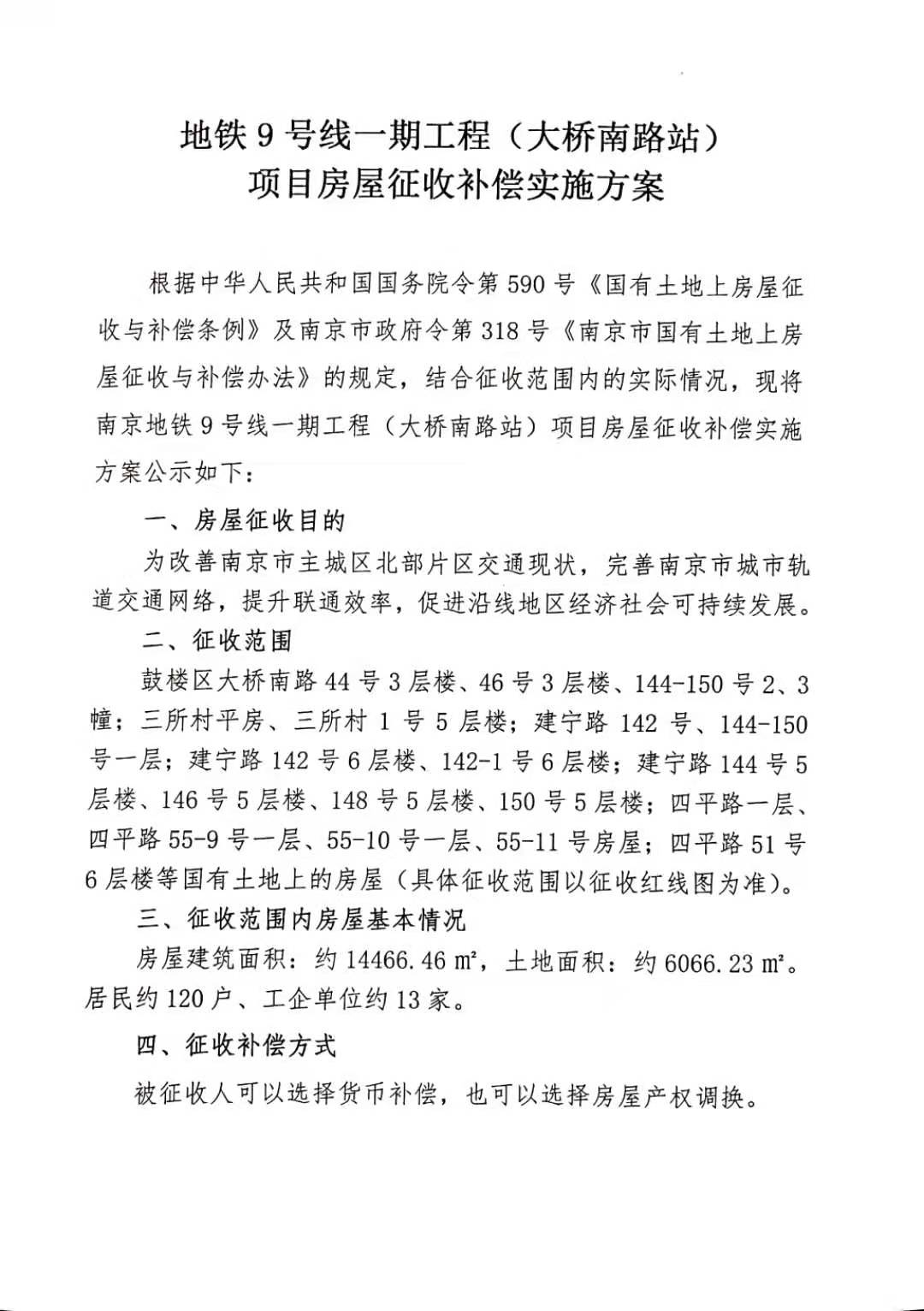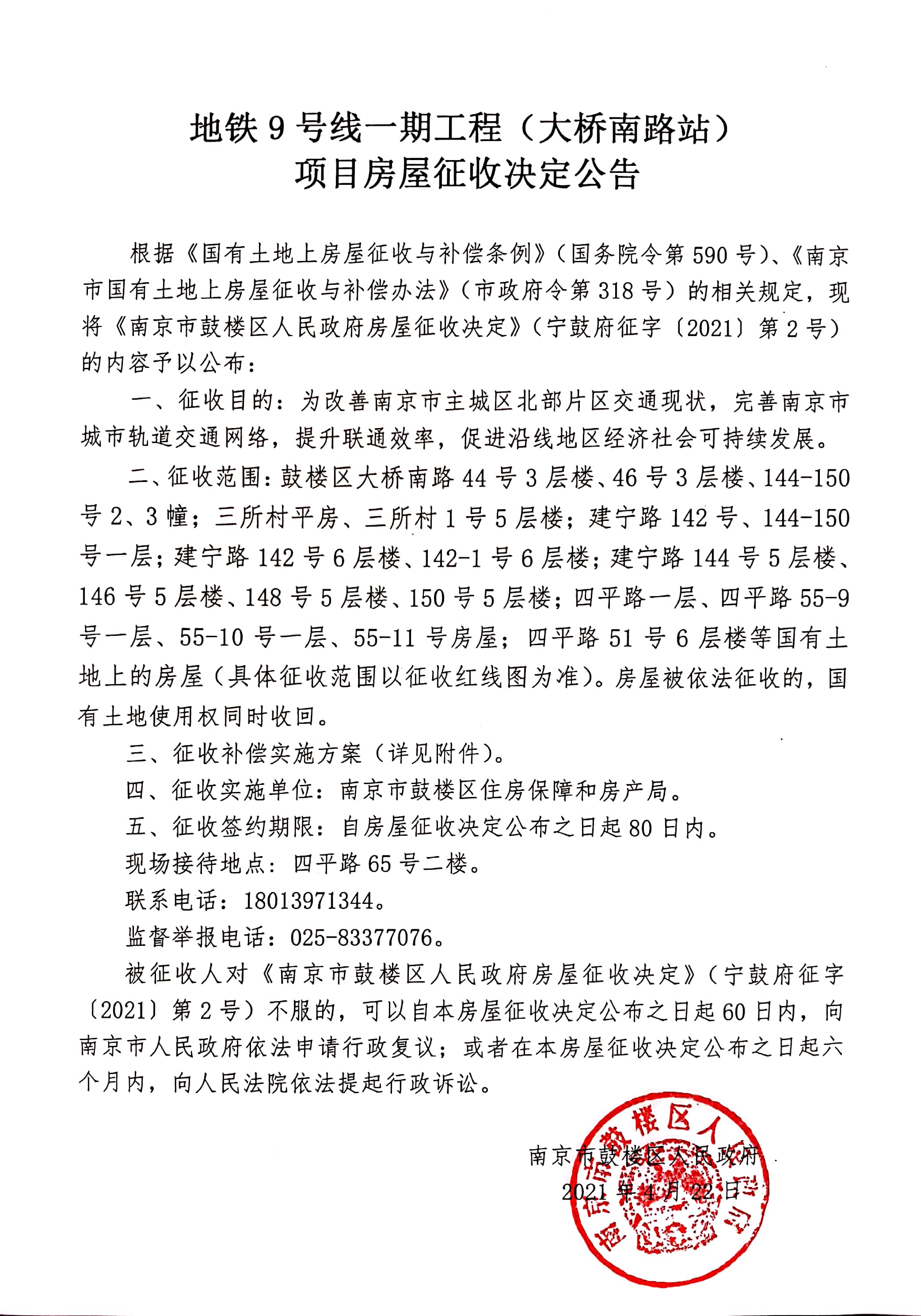 信息名稱: | 南京地鐵9號線一期工程(大橋南路站)房屋征收決定及公告 | ||