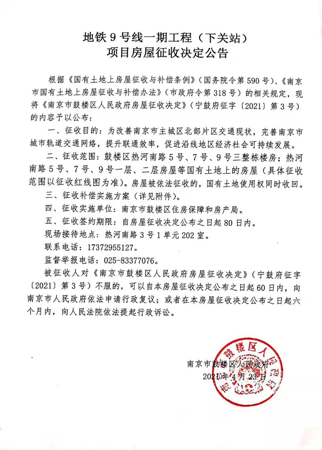 信息名稱: | 南京地鐵9號線一期工程(下關站)房屋征收決定及公告 | ||