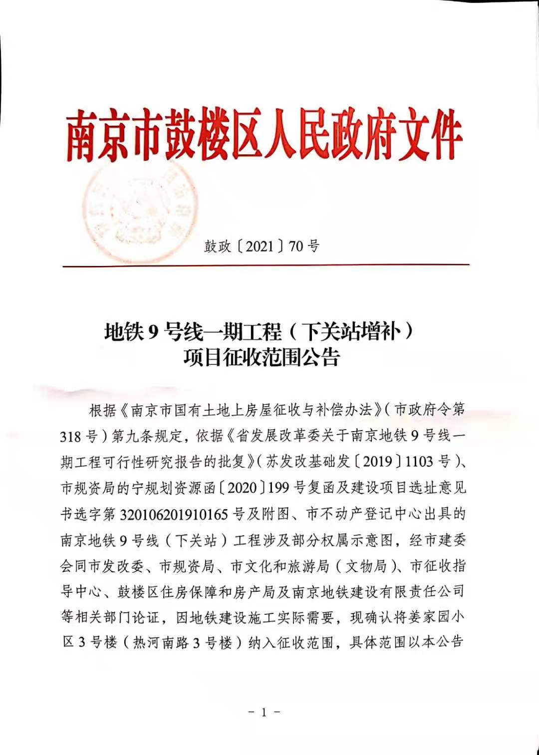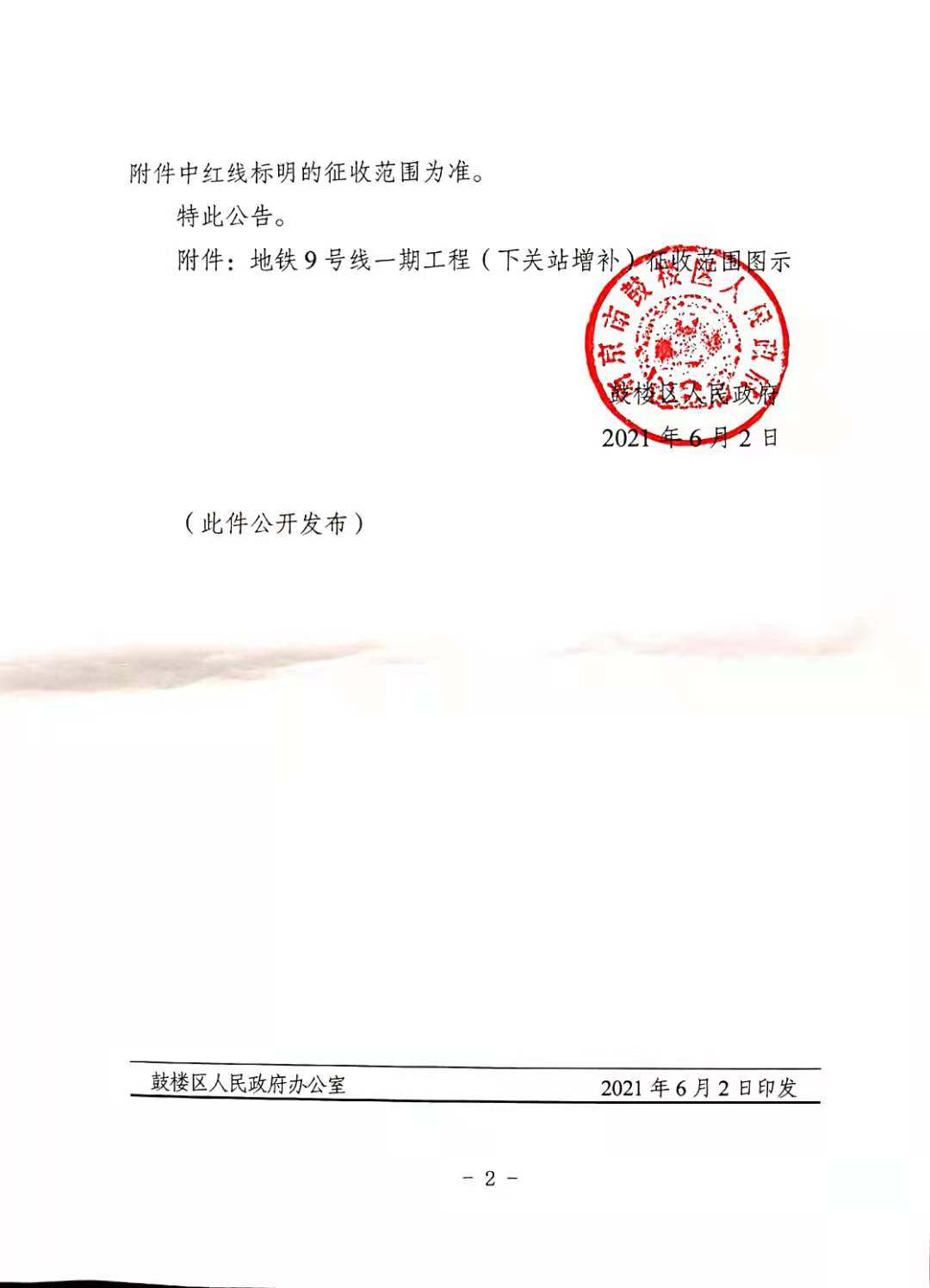 信息名稱: | 南京地鐵9號線一期工程(下關站增補)征收范圍公告 | ||