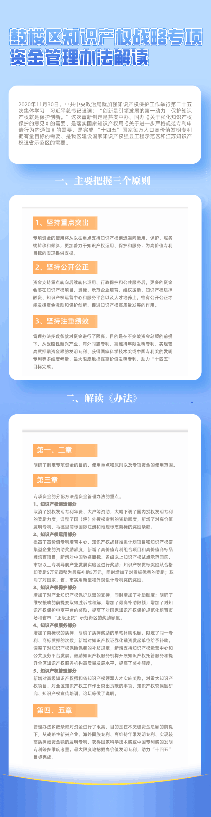 信息名稱: | 一圖讀懂《鼓樓區知識產權戰略專項資金管理辦法》 | ||