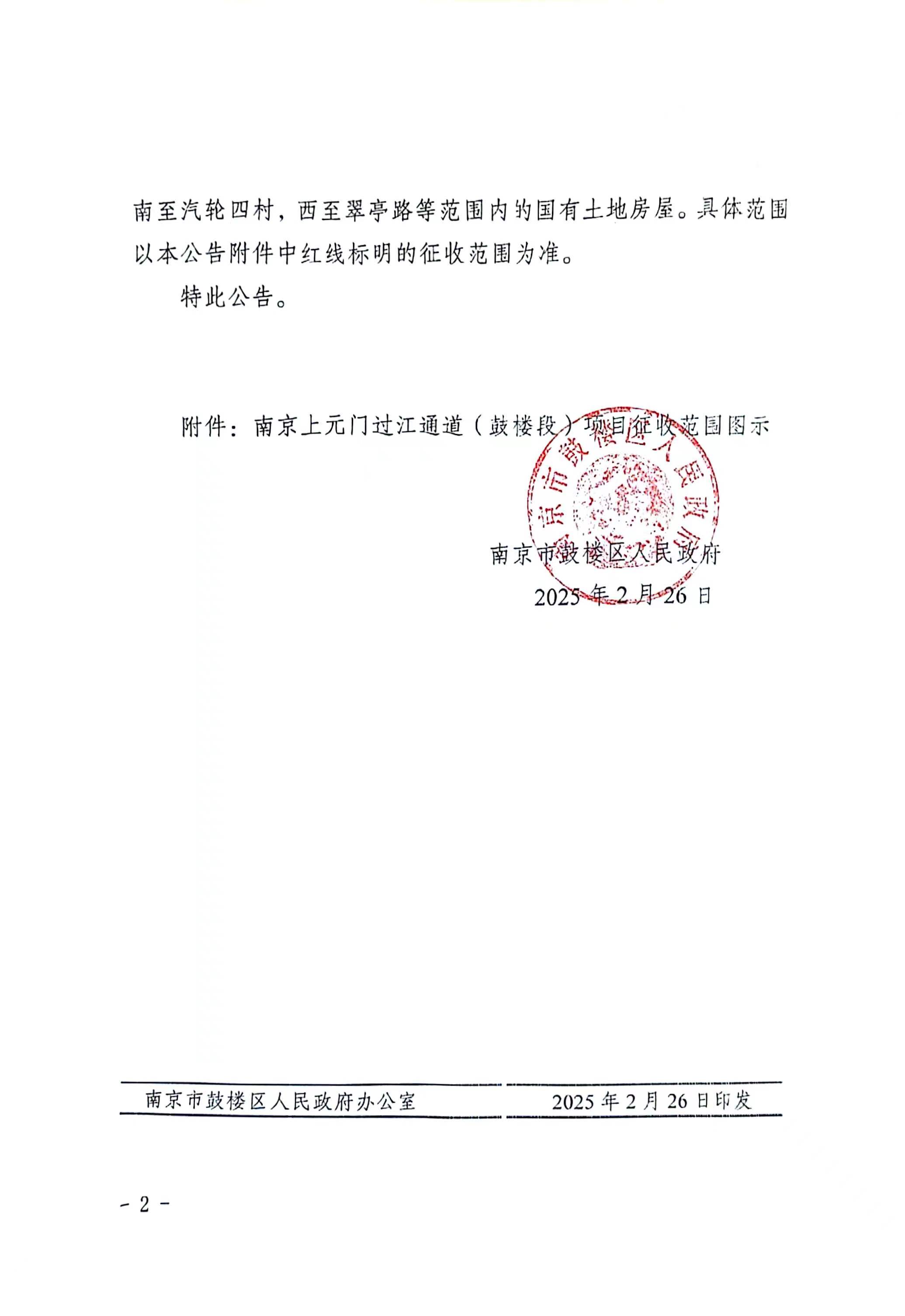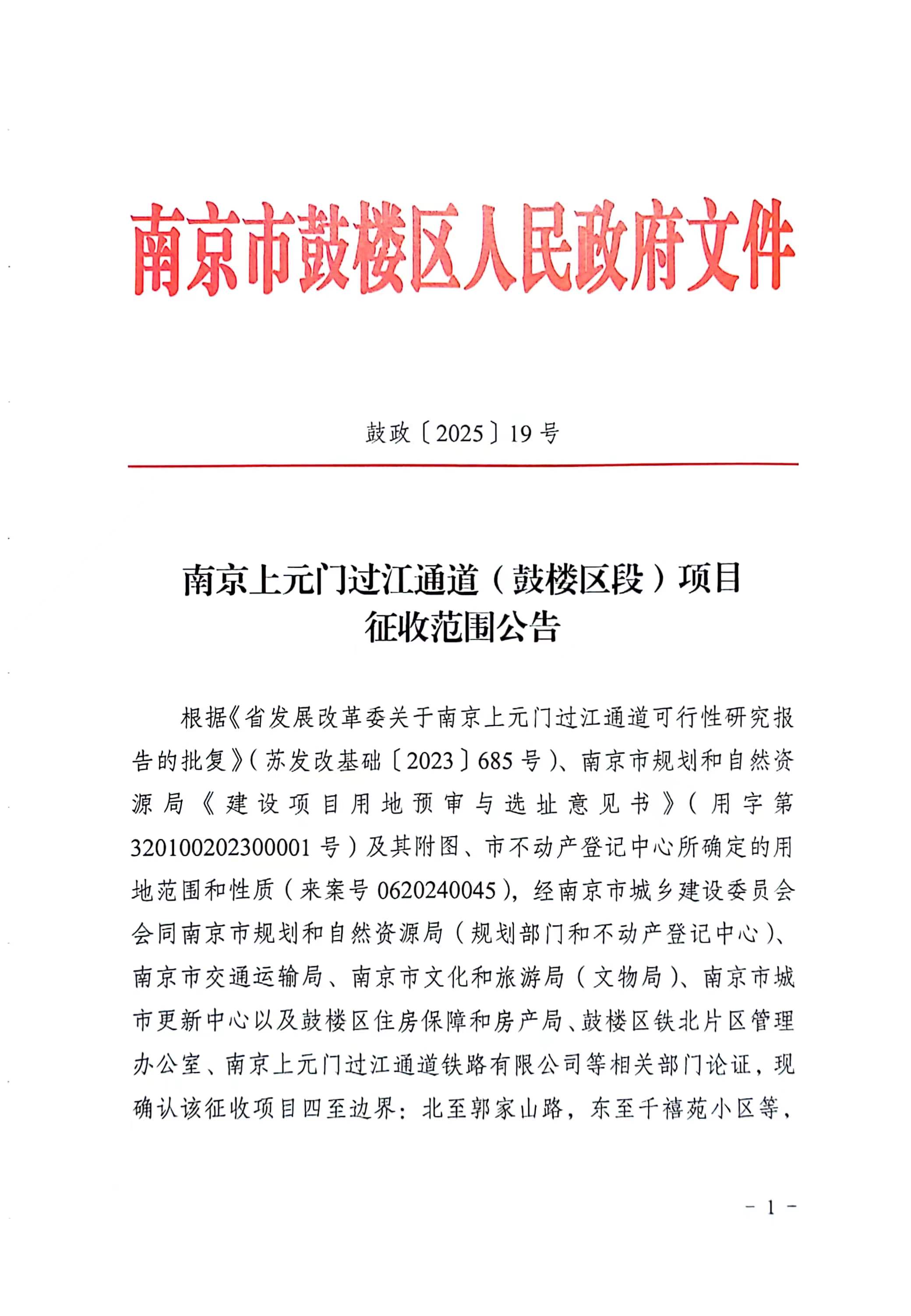 信息名稱: | 南京上元門過江通道(鼓樓區段)項目征收范圍公告 | ||