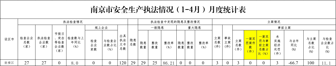 信息名稱: | 鼓樓區應急管理局2025年1-4月安全生產執法情況統計表 | ||