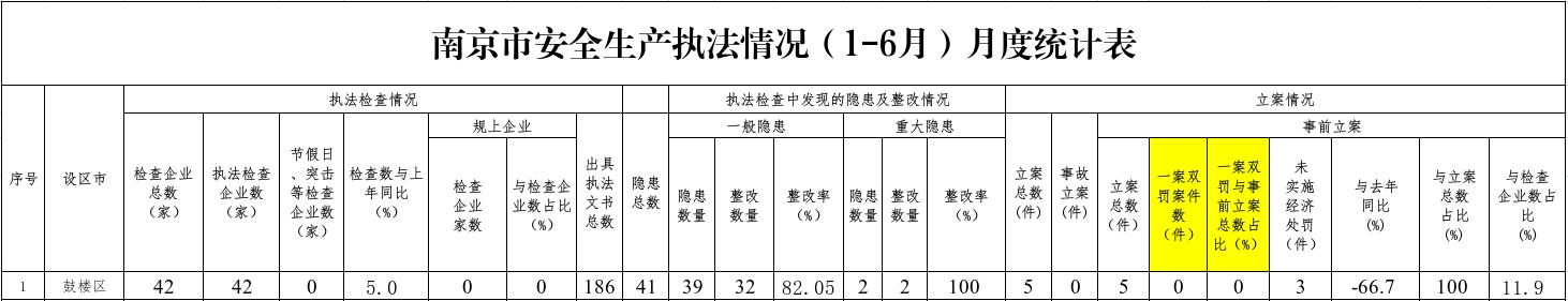 信息名稱: | 鼓樓區應急管理局2025年1-6月安全生產執法情況統計表 | ||
