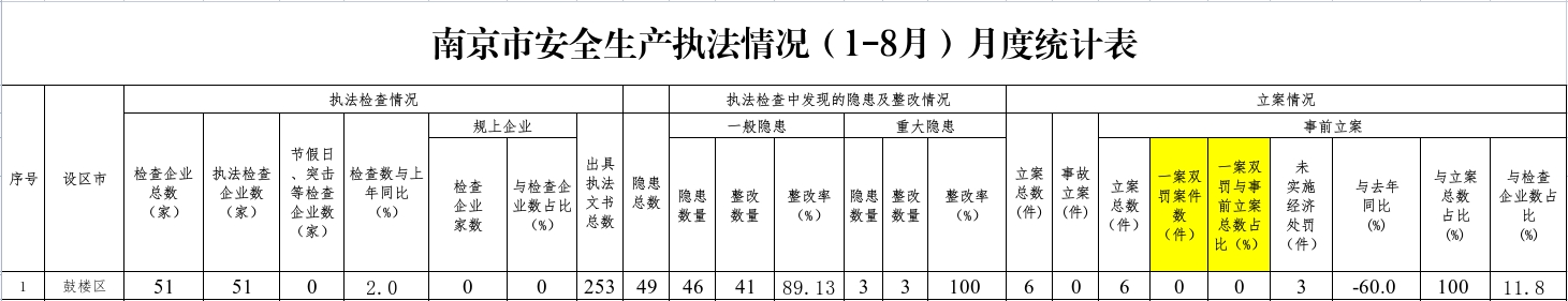 信息名稱: | 鼓樓區(qū)應(yīng)急管理局2025年1-8月安全生產(chǎn)執(zhí)法情況統(tǒng)計(jì)表 | ||