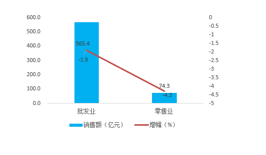 1- 2月,鼓樓區限額以上銷售額達到639.7億元。其中,限額以上批發業銷售額565.4億元,同比下降1.9%;限額以上零售業銷售額74.3億元,同比下降4.3%。