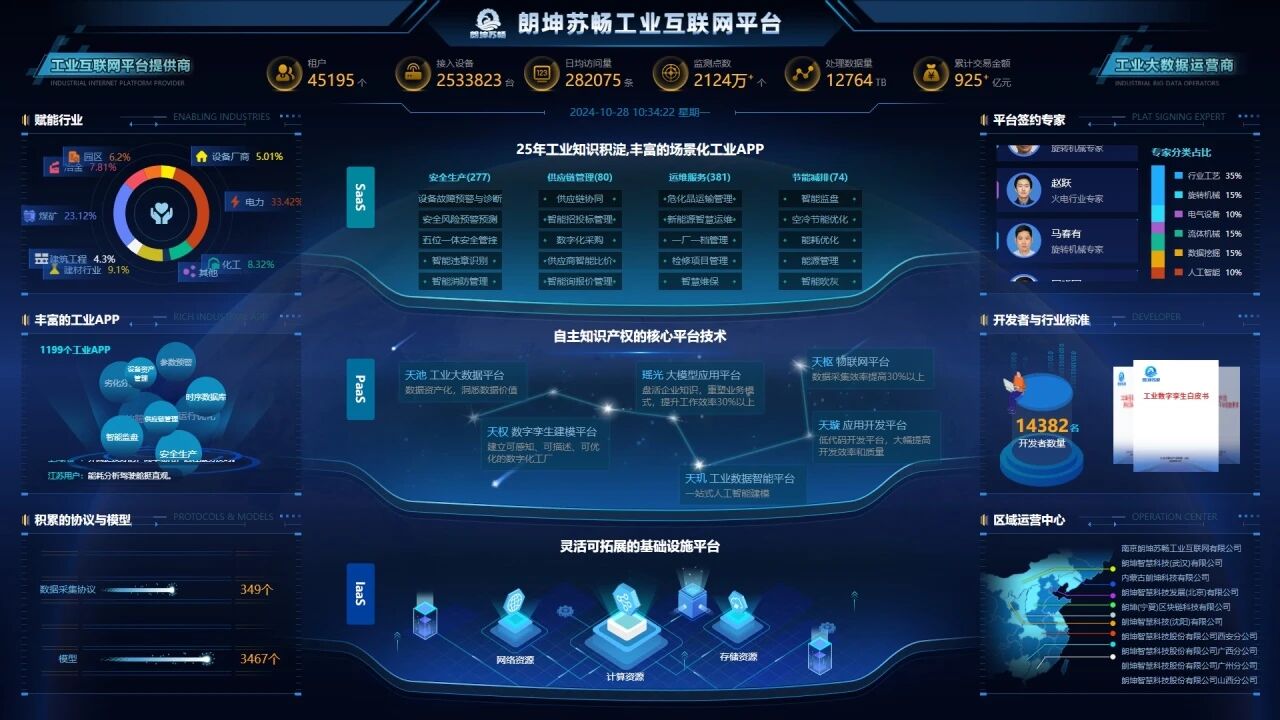、墨西哥、巴西等全球二十余個國家,打造了三峽國際全球電站數字監控中心、國電電力印尼爪哇電廠智慧安全管控平臺等一批海外標桿,交出一張又一張閃亮“出海成績單”。2025年,朗坤智慧亮相世界清潔能源裝備大會、中國國際進口博覽會等國際舞臺,加入南京市“全球數字服務商”聯盟。同年5月還亮相央視“品牌強國工程”欄目,對外展示國家級工業互聯網平臺的品牌形象與技術自信。 ????朗坤智慧發展 “加速度” 的背后,離不開企業日復一日的創新堅守。鼓樓區始終與企業同向而行,以全方位、全鏈條的貼心服務,為這份堅守保駕護航。 ????AI創新成果涌現。鼓樓積極搶占人工智能、綠色低碳等前沿賽道,有力推動科技創新與成果轉化,為朗坤等企業在智能制造、智慧能源等領域高質量發展蓄勢賦能。依托鼓樓區濃厚的科創氛圍與完善的創新載體,蘇暢平臺融入信創體系,加速內核升級,持續打磨產品、迭代技術,推動工業互聯網、人工智能與工業制造深度融合,優化完善“云、邊、端”產品體系和服務能力,形成“大模型+智能體+工業APP”的全棧AI能力體系。2025年,朗坤智慧新增50項原創核心技術專利,“大型煤炭企業設備智能管理系統關鍵技術研究與應用”等5項成果通過“國際領先”技術鑒定,高效支撐“一圖四清單”構建。 ????跨行業跨領域服務能力提升。鼓樓區深入打造“智改數轉網聯” 解決方案供應商集群,整合區域內技術、人才、資本等優質資源,搭建供需對接平臺,推動集群內企業協同創新、優勢互補。作為集群牽頭單位,朗坤智慧圍繞安全生產、運維服務、節能減排、經營管理等高價值領域,持續做深拓廣在電力、煤礦、鋼鐵、化工等流程工業的專業優勢。一方面,賦能頭部企業,承建了大唐集團能源工業互聯網服務中心、國家電投貴州金元織金電廠智慧電廠、國能大渡河智能監盤系統、華電煤業穿透式安全管控系統等一批行業燈塔工程;另一方面,支撐中小企業智改數轉,提供企業管理、設備上云、供應鏈協作等“小快輕準”型數字化解決方案。