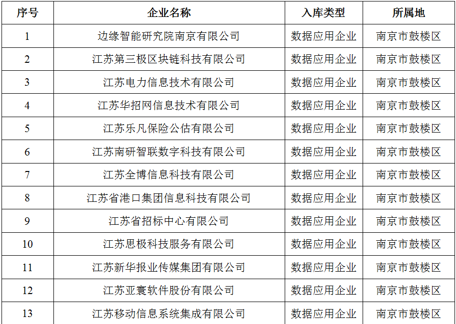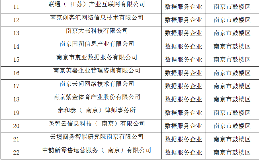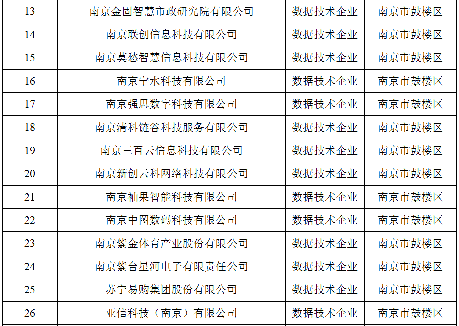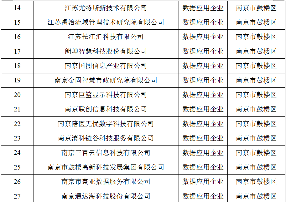 ????近日,江蘇省數(shù)據(jù)局正式發(fā)布了江蘇省首批入庫培育數(shù)據(jù)企業(yè)名單,全省共3157家,涵蓋數(shù)據(jù)資源、數(shù)據(jù)技術(shù)、數(shù)據(jù)服務(wù)、數(shù)據(jù)應(yīng)用、數(shù)據(jù)安全、數(shù)據(jù)基礎(chǔ)設(shè)施六個類別。其中,南京市鼓樓區(qū)表現(xiàn)亮眼,111家企業(yè)入選,占全市入選企業(yè)量的20%。 ????為助力鼓樓區(qū)數(shù)據(jù)企業(yè)躋身省級發(fā)展梯隊,區(qū)數(shù)據(jù)局以“數(shù)據(jù)要素×”行動為牽引,以“摸清家底、培育生態(tài)”為目標,打出精準服務(wù)“組合拳”,全面梳理摸排轄區(qū)數(shù)據(jù)企業(yè),通過“線上政策推動+線下登門走訪”的形式開展政策解讀,點燃企業(yè)申報熱情;明確數(shù)據(jù)服務(wù)專員,為企業(yè)提供全流程申報指導(dǎo),從材料規(guī)范到系統(tǒng)填報全程跟進;主動與上級主管部門溝通,第一時間反饋,高效聯(lián)動協(xié)調(diào),靶向破解申報堵點難點,以“保姆式”精細化服務(wù)推動申報工作提質(zhì)增速,讓政策紅利精準滴灌企業(yè)發(fā)展,為鼓樓區(qū)釋放數(shù)據(jù)要素乘數(shù)效應(yīng)、繁榮人工智能產(chǎn)業(yè)生態(tài)筑牢根基。 江蘇省第一批入庫培育數(shù)據(jù)企業(yè)名單 (南京市鼓樓區(qū))名單如下 數(shù)據(jù)資源企業(yè)